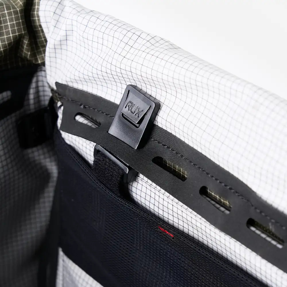 Zippers are the most frequent point of failure and weather intrusion. The Duffel Box uses a patent-pending segmented roll-top closure to keep things simple, strong, and dependable.