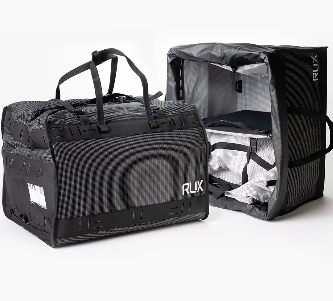 The Duffel Box is fully compatible with the entire RUX ecosystem from Packing Cubes and Organizer Panels to Utility Straps, Cooler Cubes, and even your 70L or 40L Gear Boxes.